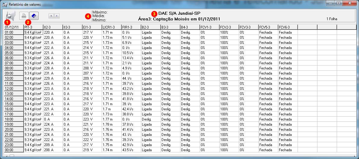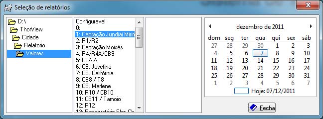 Para abri-lo, de 2 (dois) clicks com o mouse em "Valores", depois selecione a estação (área) desejada, e a data