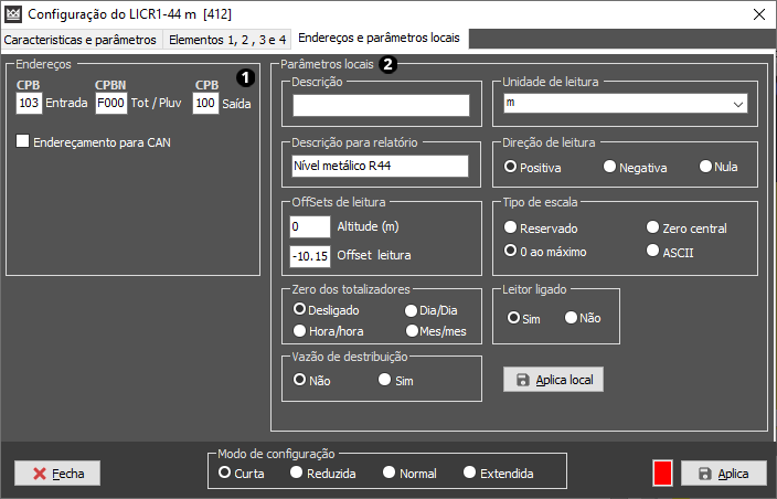 Ps: Para salvar as informações dos Parâmetros Locais, NÃO USE O BOTÃO APLICA no canto direito da Janela de Leitores, e sim o botão "APLICA LOCAL"