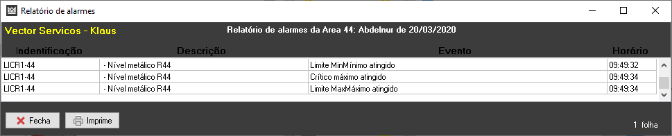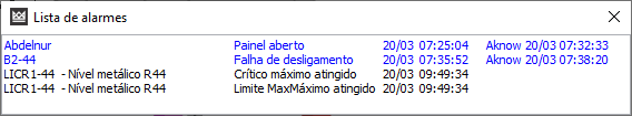 Descrição para relatório: Essa descrição é onde será mostrada na "Janela de Alarme", e "Relatórios de Alarmes", (Exemplo: - Nível metálico R44)