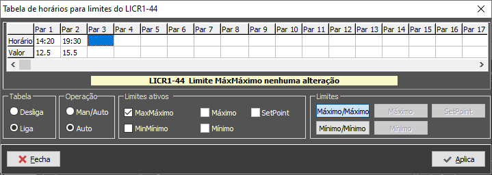 Caso queira que um instrumento analógico mude o valor de algum limite automaticamente em uma determinada hora do dia é possível, é possível com essa tabela de horários.