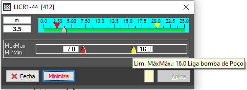 Exemplo na Janela de leitor: (Para aparecer o texto "HINT", coloque o mouse sobre a seta dos limites configurados.